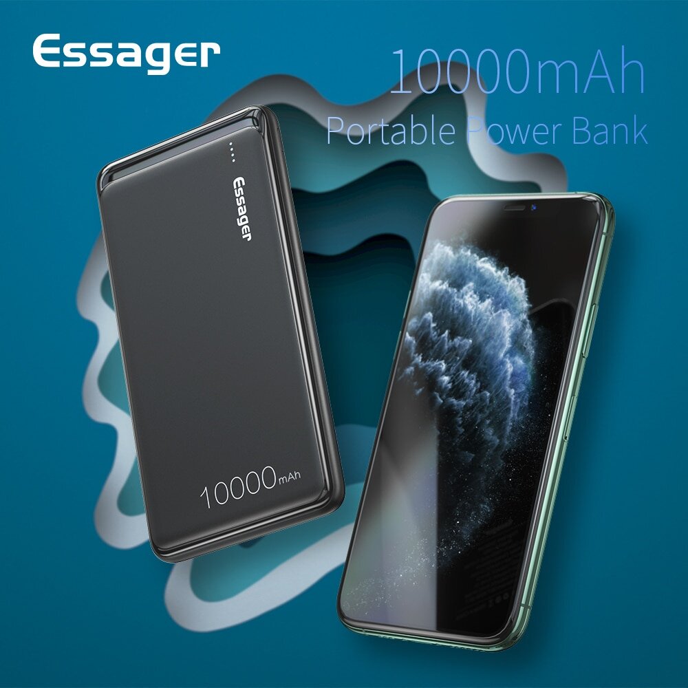 👍🏻Essager, 10000 мА/ч, #внешний #аккумулятор, тонкий, USB, 10000 мА/ч, #портативное #зарядное устройство для Xiaomi Mi, 3, iPhone, #повербанк
