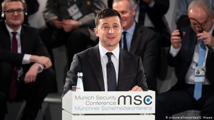 Президент Украины Владимир Зеленский 15 февраля выступил на Мюнхенской конференции по безопасности — крупнейшем форуме по вопросам внешней политики и международной безопасности. Дебютное выступление президента Украины прошло в небольшой комнате отеля Bayerischer Hof. Как отмечает «Коммерсант», это помещение вмещает меньше людей, чем зал, где в этот же день выступали президент Франции Эмманюэль Макрон, госсекретарь США Майкл Помпео и министр иностранных дел России Сергей Лавров. Причем, как утверждает издание, среди пришедших послушать речь Зеленского не было ни одного главы государства — в этот момент в другом зале выступал глава МИД Китая Ван И. Президент Украины начал свое выступление с того, что мировые политики все меньше уделяют внимания его стране. Он отметил, что в отчете о ситуации в мире, подготовленном к конференции в Мюнхене, «только восемь упоминаний об Украине», что меньше, чем в предыдущих отчетах. В связи с этим Зеленский спросил: «А не рано все начали успокаиваться?»