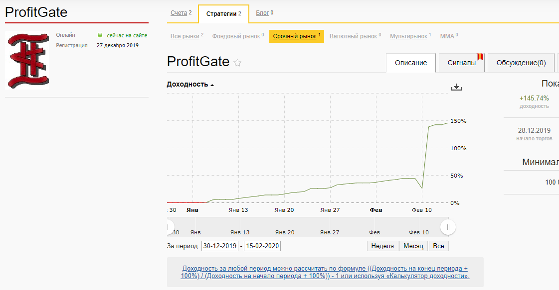 И снова с вами лучшая аналитика по рынку, подтверждённая доходностью на реальном публичном счёте. Очередной еженедельный обзор с обзором по акциям Газпрома и Сбербанка, Индексу РТС, Курсу доллара и Евро. По публичному счёту, чтобы не возникало вопросов. Он ведётся с демонстрационной целью правильности аналитики демонстрируемой на канале. Основной счёт у меня находится у другого брокера и на нём гораздо меньшие риски... Торговля на публичном счёте изначально велась с повышенными рисками просто для того чтобы показать насколько хорошо отрабатываются прогнозы из аналитики... В этом году была всего одна минусовая сессия. Скриншот публичного счёта: Сам очередной еженедельный обзор рынков: Спасибо за просмотр и ваши лайки ❤, жмите ↑ на кнопки соц сетей. :) Подписывайтесь на наш телеграм канал: https://t.me/ProfitGate И на ютуб канал по этой ссылк