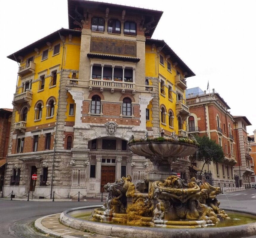 Вообще история квартала интересная... и немножко грустная. В начале ХХ века, когда модерн набирал популярность, архитектор из Флоренции Джино Коппеде задумал построить в Риме современный квартал для среднего класса. Здесь он отразил всё, что свойственно модерну (в Италии этот стиль ещё называют либерти): отсылки к античным мифам, сказочные башенки из средневековья, множество растительных орнаментов и животных... в общем, получился очень изящный район, совсем не похожий на окружающий его город. Живи и радуйся!