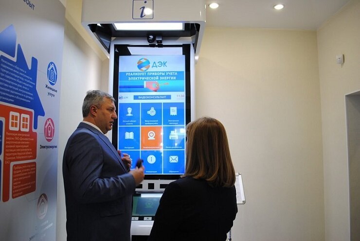 Новый Единый расчетно-информационный центр услуг ЖКХ получил современные системы обслуживания клиентов: информационный видеотерминал, автономного робота, детский уголок с сенсорными киосками, и уличный информационный терминал самообслуживания. Дальневосточная энергетическая компания открыла Единый расчетно-информационный центр услуг ЖКХ (ЕРИЦ) в Се. Новый современный высокотехнологичный клиентский офис в Амурской области стал третьим и уже одиннадцатым на Дальнем Востоке. Реализация проектов ЕРИЦ позволяет повысить качество обслуживания клиентов и увеличивать собираемость платежей. В первую очередь, активная реализация проекта ЕРИЦ способствует исполнению Указов Президента Российской Федерации в части реализации Государственных программ «Цифровая экономика» и «Доступная среда». В благовещенском ЕРИЦ представлены передовые разработки и технологии в сфере самообслуживания клиентов. Здесь было решено впервые внедрить уникальную автоматизированную систему «Видеоконсультант».