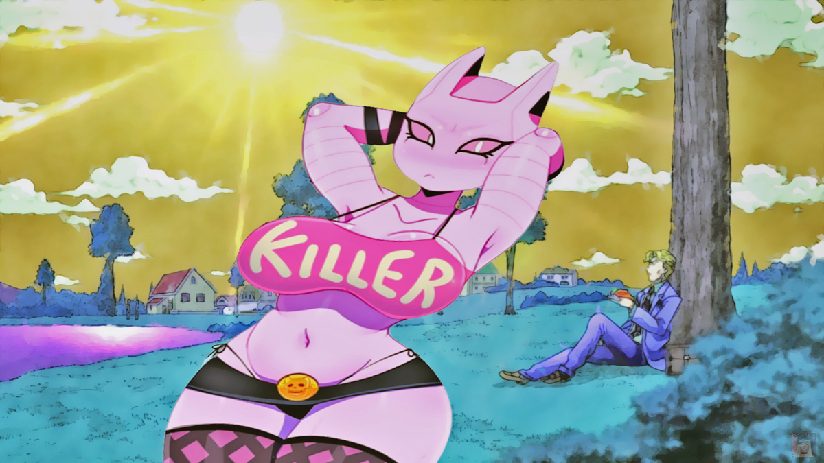 Привет, сегодня я расскажу о стояках с самой сильной с@ксуальной энергией из аниме и манги "Невероятные приключения ДжоДжо". ...И, сразу оговорюсь, что для многих номинанты будут ожидаемы и откровений не будет. Это лишь потому, что Араки — ленивый дед, который вложил все очки с@ксуальности в станды главных действующих лиц, а станды второстепенных персонажей, самое большое, будут очень мерзкими и на том уже спасибо. "Царица-Убийца" 🐱 Главной любимицей четвертой части бизарных похождений ДжоДжо бесспорно можно считать "Killer Queen". Ее и так все обожают за стильный дизайн, многообразие эффектных способностей, схожесть с миленьким розовым котенком, что уж говорить, даже ее хозяин безмерно крут. Однако, все мы понимаем, что "Убийца Королев" не была бы на столько популярна, если бы не была совершенна со всех сторон. Так и есть, ко всему прочему она источает сильнейшую с@ксуальную энергию с помощью которых и побеждала своих врагов. Не правда ли это звучит более разумно, чем если и в пр