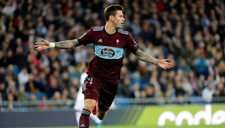 «Кельты» вырвали ничью в гостях в Мадриде (2:2). Российский нападающий «Сельты»Федор Смолов во второй раз подряд вышел в основе своей новой команды и провел 70 минут в матче 24-го тура чемпионата Испании против «Реала». Форвард отличился на 7-й минуте встречи, однако во втором тайме действовал не так убедительно и был заменен на Дениса Суареса. Разбираем игру Смолова в матче с «Королевским клубом». 1. «Реал» выставил сильнейший атакующий состав с ударным трио в атаке Азар — Бензема — Бэйли расположился по схеме 4-3-3: 2. «Сельта» выбрала расстановку 3-5-2, которая при обороне трансформировалась в 5-4-1. Пару форвардов составили Аспас и Смолов, которые зачастую менялись позициями. 3. План «Сельты» на первый тайм был таков: игра низким блоком на контратаках. Итоговые цифры по владению мячом составили 70,4% на 29,6% в пользу «Реала», у хозяев было и преимущество по ударам: 7-3. «Сельта» оборонялась очень компактно — игроки «сливочных» не могли вскрыть защиту ни с помощью комбинаций, ни че