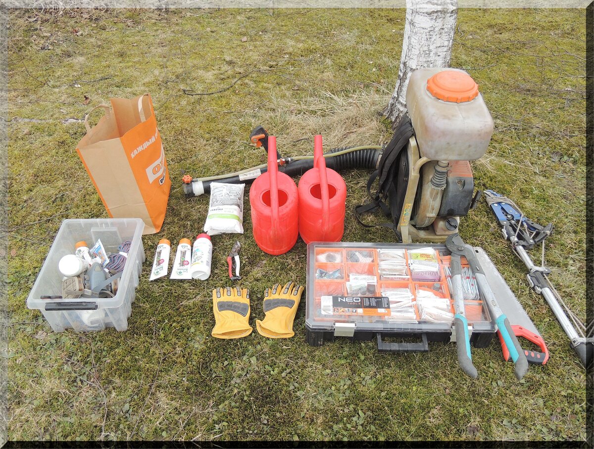 Привет всем! Сегодня немного о том, какой инструмент нужно иметь для обрезки яблонь. С моей точки зрения то, что вы видите на фотографии ниже, вполне хватает для проведения профессиональной обрезки плодовых. Этот инструмент меня никогда не подводил. Что мы видим из режущих инструментов: Ножовка ручная, которая должна быть с мелким зубом. Обязательно острая. Ножницы рычажные садовые Gardena. Секатор маленький ручной производства Япония. Секатор телескопический производства Германия. Лейки мне нужны для того, чтобы я мог разводить препараты. Чемоданчик с инсектицидами и фунгицидами. Перчатки рабочие. Также необходимо иметь хорошую алюминиевую раздвижную лестницу. Без неё дело будет идти совсем по - другому, вам придётся лазить по деревьям, что не всегда удобно. Немного о телескопических секаторах. Для себя я стараюсь покупать инструмент лучшего качества, особенно, когда выбор касается технического инструмента. В данном случае этот телескопический секатор марки LUX, сделан кач