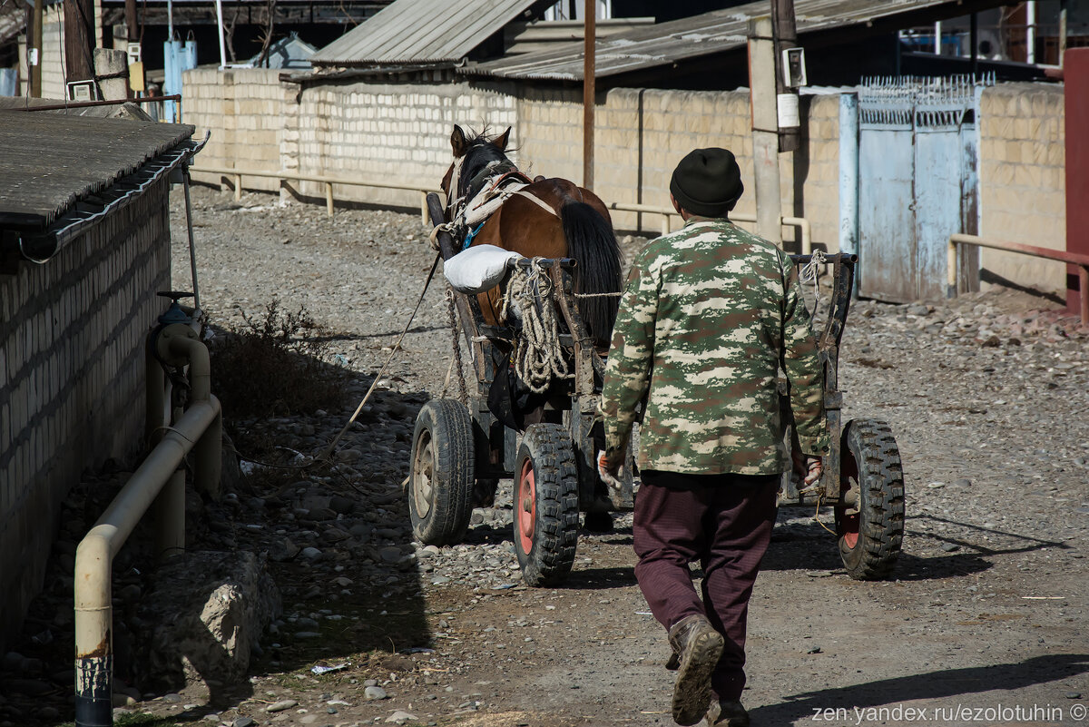 В Азербайджан я поехал всего на один день и первым место, куда я попал после пересечения границы было село Садыхлы. Я погулял там и пофотографировал, как выглядит азербайджанское село прямо у границы с Грузией. Показываю фотографии. Сразу после пересечения границы с одной стороны небольшой дороги я увидел запряженного одинокого ослика, с другой небольшой сельский магазин. Кстати, мне было интересно посмотреть на ассортимент магазина в таком месте, о нем я рассказывал в предыдущий раз, можно посмотреть по этой ссылке. Возле магазина сидят мужики, играют в нарды и пьют чай. Они же таксисты и если нужно, могут довезти куда-нибудь дальше по Азербайджану. Есть в селе автобусная остановка. Судя по объявлению, до сюда иногда доходит автобус из Баку. Судя по всему, местные здесь очень любят адидас и жигули(большинство ездят именно на них). Иногда можно встретить вот такой тюнинг в виде наклейки адидас на заднее стекло. Большинство местных, если имеют возможность, стараются сделать ворота и ве