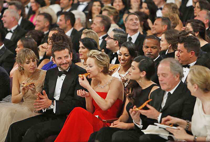 Один взгляд на таких, как Дженнифер Лоуренс и Брэдли Купер, которые едят пиццу на Оскаре 2014 года, и вы поймете, что даже знаменитости клянутся в своей любовью к классическому итальянскому деликатесному наслаждению. Лоуренс также объявила, что заявляет о своей любви к пицце. «Если я хочу кусок пиццы, я ем кусок пиццы». Но эти двое не единственные знаменитости кто любит пиццу и чья любовь к ней не знает границ. Бейонсе «Я всегда угощаюсь одним приемом пищи по воскресеньям, когда я могу есть все, что захочу. Обычно это пицца, которая является моей любимой поблажкой». Кевин Джеймс «Нет лучшего ощущения в мире, чем теплая коробка с пиццей на коленях». Дуэйн Джонсон «Я бы никогда не выиграл награду за то, что не любил пиццу». Лара Стоун «Я думаю о диете, потом я ем пиццу». Гвинет Пэлтроу «У нас есть дровяная печь для пиццы в саду - я знаю, это роскошь, но это одна из лучших инвестиций, которые я когда-либо делал». Чаннинг Татум «Я толстый ребенок изнутри. Я очень люблю еду, и я колеблюсь м