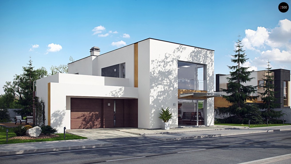 Проект Zx64 представляет комфортный современный дом с дополнительным помещением, предназначенным для коммерческого использования. В основе дизайна в стиле минимализма лежит кубическая форма, которая обыграна оригинальной «прорисовкой» цветом, нишами, колоннами, большими панорамными окнами. Куб может быть интересным и разным, и эту истину прекрасно подтверждает данный проект. Планировка первого уровня чётко разграничивает зоны. Хозяйственная — с гаражом и подсобным помещением. Дневная, спроектированная «восьмёркой», — с гостиной и кухней со столовой. Элегантное решение этой части — устроенный в перекрестье камин. Коммерческое помещение с собственным входом расположено справа от прихожей. Три спальни и сантехнический блок (ванная плюс прачечная) оборудованы на втором этаже. В коммерческую часть этажа ведёт отдельная лестница с первого уровня. Понравился проект? Пишите комментарии. Посмотреть другие проекты вы можете на сайте.
