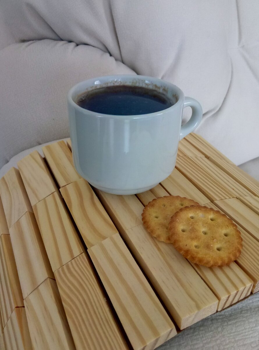 Люблю заходить в магазин Фикс прайс и находить там, что-нибудь интересное. Купила игру в отделе детских игрушек. Игра называется БАШНЯ, состоит из деревянных брусочков, которые меня и привлекли. Покрутила, повертела в руках и задумала сотворить из нее что-то красивое, а главное полезное, а вдохновил меня поднос из Икеа. В результате творческого вдохновения получилась гибкая подставка на диван для чаепития, кофенаслаждения, пультохранения, очков нахождение😀, а можно и кошколежания 🐱 (ну, а вдруг?) Итак, приступим к созданию. Материалы: 1 лист фетра формата А4, 1 набор игры "Башня" или деревянные брусочки, клеевой пистолет, клеевые стержни, лак акриловый или в металлическом баллончике. 1. Выкладываем брусочки поперек фетра и приклеиваем клеевым пистолетом к фетровой основе, далее склеиваем между собой края брусочков, чтобы получилась единая деревянная полоска. 2. Отступаем пару миллиметров от первого ряда и снова прикладываем брусочки, приклеиваем. 3. Проверяем результат, отгибае