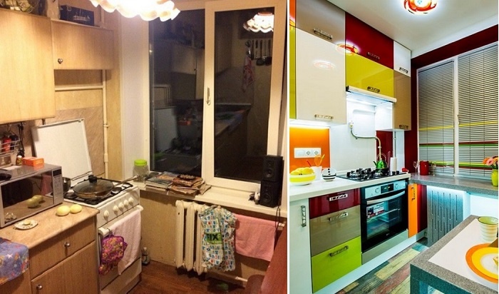 Мой друг решил показать свою кухню до и после. Вот фотографии до и после. Стали делать ремонт, со стен сорвали обои и кухонную плитку, на полу был ленолиум, а также была на кухне батарея, но она ему не нравилась и решил ее поменять.
