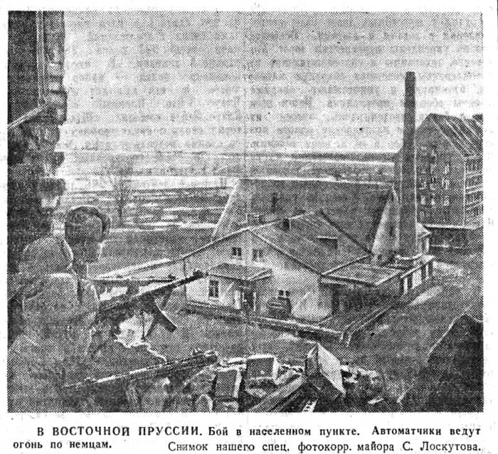 Здесь наступал батальон капитана Сидорова. Од вышел к реке в числе первых советских подразделений, ворвавшихся в город с запада. Прямая, одетая в гранит река чем-то напомнила командиру Неву и далекий родной Ленинград, который он отстаивал в тяжелую пору немецкого наступления. Теперь перед его батальоном была река Восточной Пруссии, и сердце офицера исполнилось гордостью.