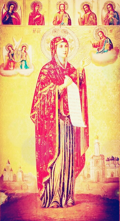 О Пречистая Госпоже Богородице, Мати Боголюбивая, Надеждо нашего спасения! Воззри милостивно на предстоящия с верою и любовию и покланяющияся Пречистому образу Твоему: приими наше хвалебное пение сие и пролей теплую Твою молитву о нас, грешных, ко Господу, да, презрев вся наша согрешения, спасет и помилует нас. О Предивная Владычице! Покажи на нас чудныя милости Твоя. Молим Тя умиленно, избави нас от всякия скорби, настави на путь веякия добродетели и благостныни, спаси от иск