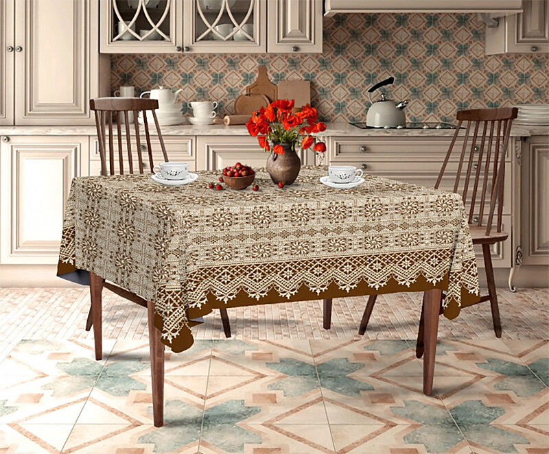 Обеденный стол с красивой скатертью делает интерьер кухни или столовой комнаты незаурядным и располагающим к комфортному времяпрепровождению. Скатерть выполняет не только декоративную функцию, она создает комфорт для людей, которые сидят за столом, приглушает звук посуды и приборов, предотвращает скольжение предметов по поверхности стола. Современная индустрия по обустройству домашнего интерьера предлагает потребителю огромный выбор скатертей. Они различаются составом, цветом, фактурой, ценой. Данный продукт выпускается в разнообразной цветовой гамме, которая способна удовлетворить любую фантазию. Наиболее эффектно на столе смотрится овал белой скатерти. Хотя дизайнеры предлагают множество вариантов цветовых решений для любого стиля и настроения. Можно выбрать расцветку, начиная от классического исполнения в молочном, бежевом или кремовом цветах, и заканчивая любым смелым оттенком. Для любителей всевозможных орнаментов, узоров и разноцветных рисунков производители выпускают скатерти
