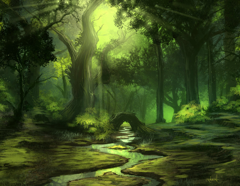 Вскоре, под кронами деревьев стало так темно, что дети больше не могли бежать, и просто брели на ощупь по узкой тропинке, прислушиваясь к жутким шагам и шорохам за своей спиной. Внезапно, они вышли на прогалину, и сразу же у них под ногами захлюпала вода.
