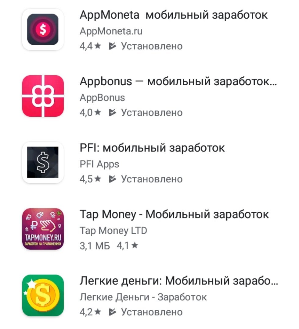 Я пробовал выводить только из 2 таких приложений: Appbonus и Лёгкие Деньги Я скачивал и другие, но не выводил из них. Appbonus - самое прибыльное из всех приложений. Прежде всего потому, что в нем платят за действия в разы больше, чем в остальных. Если вы решите использовать Appbonus, то вот мой промокод: NHAGS8 В Легких Деньгах же ситуация немного другая. Там можно заработать ещё и на викторине, а также открывая сундуки. Если вы решите использовать Лёгкие деньги, то вот мой промокод: CKIREH Существует е