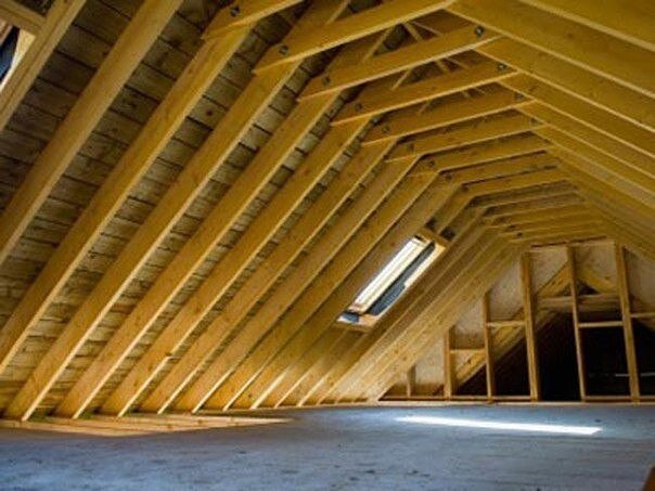 Чтобы мансарда (стропильная система) была надежной и прочной, доски и брусья для нее нужно выбирать ошкуренные, высушенные, влажностью не более 18% и без сучков, которые могут дать трещины. Для стыковки и крепежа используйте уголки, скобы, накладки, металлические зубчатые пластины.