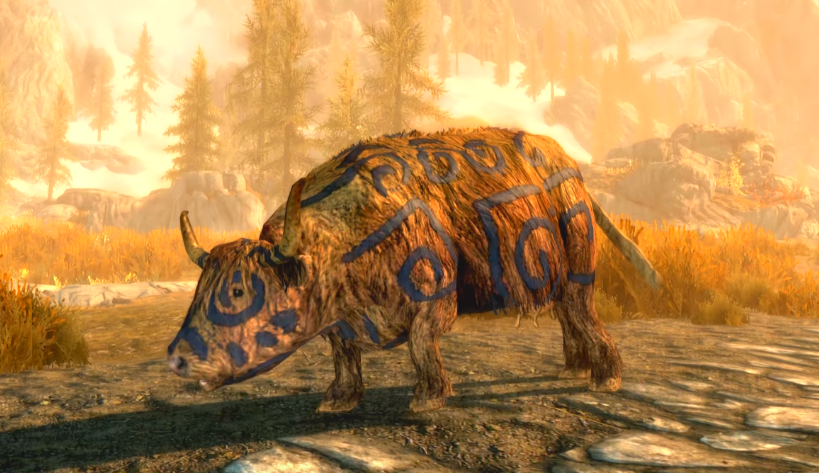 В "Скайриме" путешествуя по миру мы можем стать свидетелем различных интересных ситуаций, найти которые, специально отправившись в определенное место у нас никак не получится, ведь они появляются всегда "рандомно". Именно сегодня мы рассмотрим некоторые наиболее интересные из них, начиная с одной весьма забавной картины, как нам на встречу, по одной из дорог идут крестьяне с необычной разрисованной коровой, которая покрыта красивыми синими узорами. И чаще всего, великаны никак не реагировали на близко подошедшего крестьянина, который оставив свой дар, спокойно уходит прочь. Вторая случайная встреча для нас уже более опасная. Происходящее совершенно неожиданно и не оставляет никаких шансов пройти мимо. Когда просто идущим по своим делам, ка нам подбегает НОРД, насильно дая "рандомный" хороший предмет, с просьбой хранить у себя какое то время. После этого сразу же убегает прочь, а к нам практически сразу подбегает следующий персонаж. "Тут мимо никто не пробегал?" - Охотник И если мы