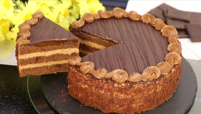 Невероятно вкусный и быстрый торт "Прага" . И так, приступим к его приготовлении ! ИНГРЕДИЕНТЫ ПОШАГОВЫЕ ФОТО РЕЦЕПТА 1. Первым делом приготовим бисквит. Сливки от 30% жирности. Шоколад темный, у меня 62% какао. Растопить. Яйца и сливочное масло комнатной температуры. Сухие ингредиенты просеять. 2. Размягченное сливочное масло взбить с сахаром до бела. 3. Добавить яйца по одному каждый раз хорошо взбивая. 4. Затем сливки и сухие ингредиенты. Все хорошо перемешать. 5. Добавить растопленный остывший шоколад. 6. Переложить в кольцо (форму). Размер формы 19 см. Отправляю в заранее разогретую духовку до 170 градусов, выпекаю до готовности. 7. Мне на это понадобилось 55 минут. Готовность проверяю деревянной зубочисткой. Даю немного остыть, вынимаю из формы, переворачиваю вверх дном, чтобы слегка выровнять верхушку (минут 20) затем полностью остывший бисквит можно завернуть в пакет или пищевую пленку. 8. А тем временем приготовлю пропитку для бисквита. Воду, сахар и ром