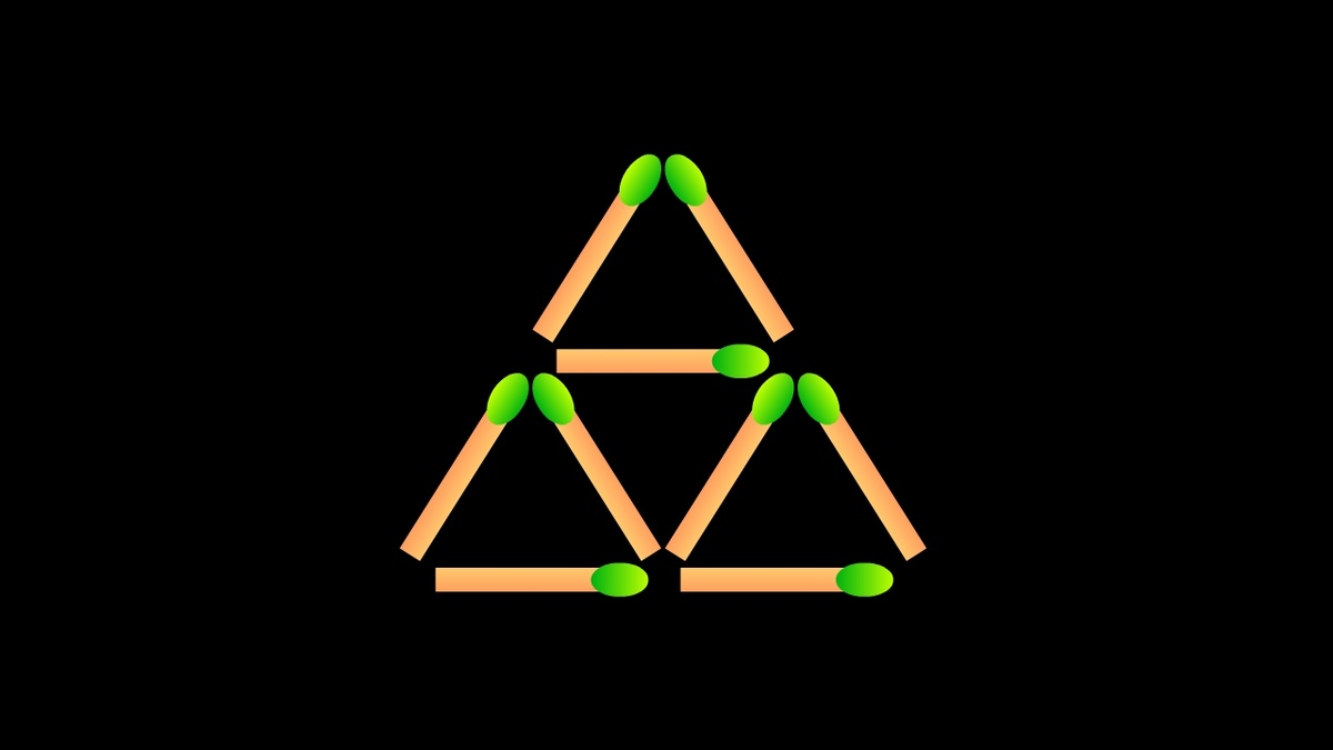 Хай! Рубрика "Спички" уже начала набирать свои обороты. 2 предыдущие статьи я делал с цифрами. В этот раз я решил разнообразить эту рубрики и ввести в неё что-то из геометрии. Надеюсь вам это понравится! Предыдущая статья со спичками и цифрами - Тыкай сюда ОТВЕТ В КОММЕНТАРИЯХ ЗЕЛЁНЫЕ СПИЧКИ: Это достаточно лёгкий уровень, с которым может справиться даже ребёнок. В среднем решается за 45 секунд. КРАСНЫЕ СПИЧКИ: Это достаточно сложный уровень, с которым даже не все взрослые смогут справиться. В среднем решается от 3 минут. Ваша задача: Перед вами будет лежать фигура из 3 треугольников. Вам нужно убрать 2 спички так, чтобы получилось 2 треугольника. Это можно сделать мысленно, а также можно начертить на листочке и попробовать все варианты, затем посмотреть ответ и сравнить. Правило: Нужно только убрать 2 спички. Ломать 1 спичку нельзя, а также нельзя добавлять спички. Некоторые люди могут вспомнить, что в предыдущей статье были цифры и спички красного цвета. В это раз снова зелёные, а