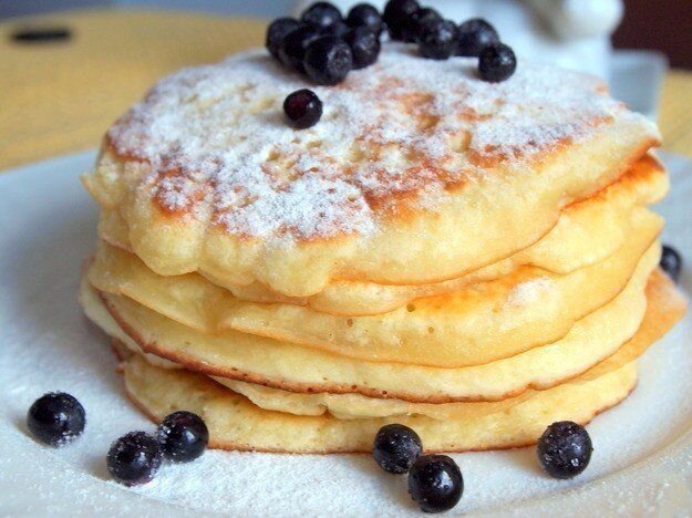Ингредиенты: Яйцо куриное 1 шт. Мука 200 г Йогурт 150 г Сода 1 ч. л. Сахар 2-3 ст. л. Молоко 150 г Сольщепотка Растительное масло для обжаривания Сахарная пудра для украшения Черника для украшени Приготовление: Смешайте муку с щепоткой соли и соды. Добавьте в мучную смесь сахар и все перемешайте. Добавьте в смесь йогурт, молоко и яйцо. Хорошенько перемешайте тесто до однородной массы. Жарьте оладьи по одному на горячей сковороде с растительным маслом. После приготовления сложите блинчики стопочкой, посыпьте сахарной пудрой, украсьте ягодами. Подавайте с охлажденным молоком или травяным чаем.