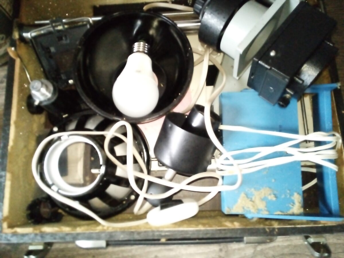 Был приобретен по случаю фотоувеличитель УПА 510 за символические 500 рублей на сайте бесплатных объявлений. Задача была в небольшой переделке в гобо проектор. Собственно отрезав всё не нужное, и приделав нужное получился такой вот агрегат: А это источник света: Всё в сборе: В основании крепление под фото резьбу (1/4 вроде), так что без проблем интегрируется на любые фото-штативы.