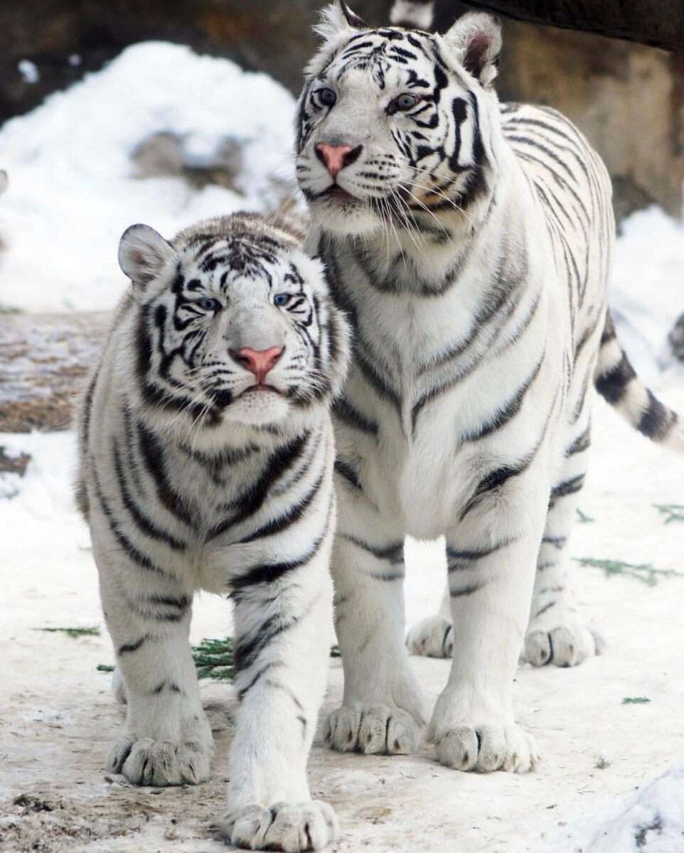 Белый тигр — особь бенгальского тигра с врождённой мутацией (не считается отдельным подвидом). Мутация приводит к полностью белой окраске — тигр с чёрно-коричневыми полосами на белом мехе и голубыми глазами. Такая окраска очень редко встречается среди диких животных. Частота появления белых тигров — 1 особь на 10 000 с нормальным окрасом. Сообщения о белом тигре в течение многих десятилетий поступали из Ассама, Бенгалии, Бихара и особенно с территории бывшего туземного княжества Рева.Первое обнаружение белого тигра в природе, тем не менее, относят к 1951 году, когда один из охотников забрал из найденного им логова белого тигра-самца и затем безуспешно пытался получить от него такое же потомство от самки с нормальным окрасом, но затем всё-таки преуспел в создании второго поколения белых тигров. Со временем популяция значительно расширилась: все белые тигры, которые сейчас содержатся в неволе, являются потомками той самой найденной особи и имеют родство друг с другом. Сейчас в неволе сод