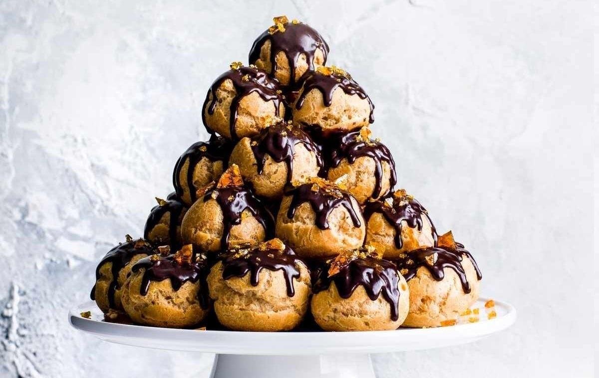 Для теста: Для крема: Приготовление: В сотейник налить растительное масло, добавить воду и поставить на огонь. Довести до кипения, а затем сразу же снять с огня. Смешать просеянную муку с сахаром, а затем всыпать в горячую воду с маслом. Быстро перемешать тесто деревянной лопаткой. После этого в тесто добавляем по одному яйца, при этом перемешиваем венчиком, либо миксером на малых оборотах. Тесто переложить в кондитерский мешок, а затем высыживать на противень (силиконовый коврик для выпечки) небольшими порциями в виде шариков. Нагреть духовку до 150-180 градусов. Отправить нашу будущую выпечку в разогретый духовой шкаф и выпекать до золотистой корочки. В это время приготовить крем. Для этого в кастрюлю налить молоко, добавить какао, сахар и крахмал. Перемешать, затем добавить яичные желтки и смешав все ингредиенты, поставить кастрюлю на водяную баню. Готовить заварной крем до загустения, постоянно помешивая венчиком. Как только крем готов, снять с огня, дать остыть, а зате