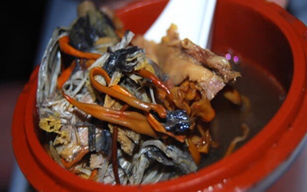 В городе Шанхай, Китай, можно попробовать суп из плаценты оленя, который может принести пользу здоровью: укрепить половую силу, вылечить почки, улучшить состояние кожи и повысить жизненные силы. В этот суп добавляются грибы, цветы, курица, но главный ингредиент – плацента оленя, которая довольно эластичная и которая долго жуется. Плацента – это похожий на мешок орган женского организма, который прикрепляет эмбрион к матке матери во время беременности большинства млекопитающих. Через плаценту проходит кровь из тела матери к эмбриону, которая доставляет ему кислород и питательные вещества, а также помогает выводить побочные продукты. После рождения ребенка плацента выходит из тела матери