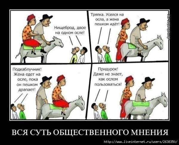 Класть хрен на общественное мнение — один из главных навыков успешных людей. Без этого навыка невозможно достичь больших высот! Напомню один анекдот на эту тему: