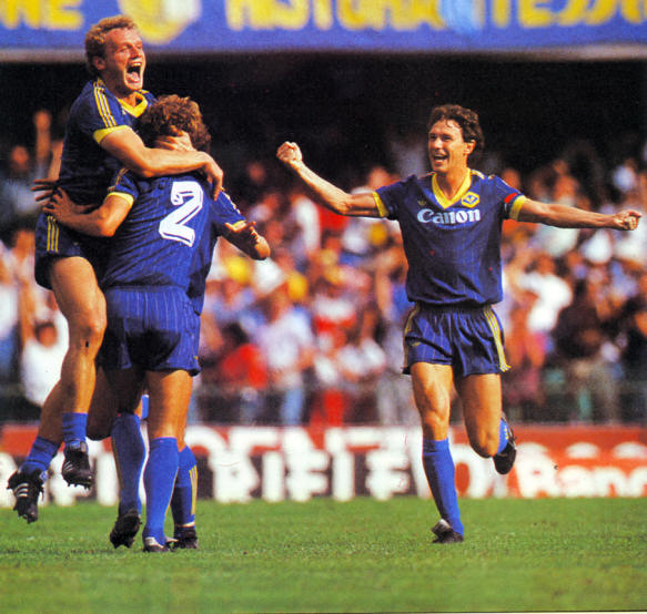 В 1984-85 годах «Эллада Верона» , немодный провинциальный клуб, который играл в Серии В всего несколько лет назад, достиг невозможного. Они выиграли Серию А. И это была не Серия А в упадке, с недостатком качества. Это была эпоха Диего Марадона в Неаполе (средняя посещаемость Неаполя в этом сезоне была ошеломляющей - 77 000), Мишеля Платини в Ювентусе, Карла-Хайнца Румменигге в Интер, Фалькао в Роме и Зико в Удинезе.