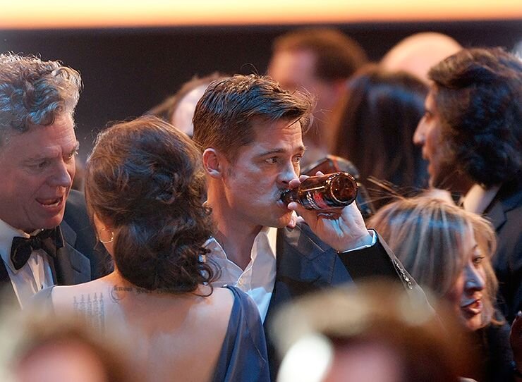 Этот знаменитый актёр «дружил» с алкоголем с юности, с момента окончания колледжа. Разумеется, будучи в браке с Анджелиной Джоли, он не отказался от своего пристрастия, и пил очень много и ежедневно. Джоли терпела поведение мужа, сколько могла, но в один из дней всё же подала на развод.