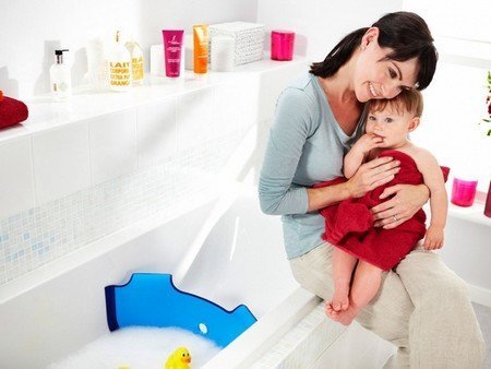 Очень практичная вещь – это барьер для ванны. Что это такое? Это заграждение, которое устанавливается в любое место ванны. Затем туда наливается вода и ребенок плескается в свое удовольствие. В результате вы экономите воду. Зачем ребенку наливать полную ванну, ему в таком мини-бассейне гораздо комфортнее. Можно, конечно, использовать детскую ванночку, но она занимает много места, барьер гораздо удобнее.