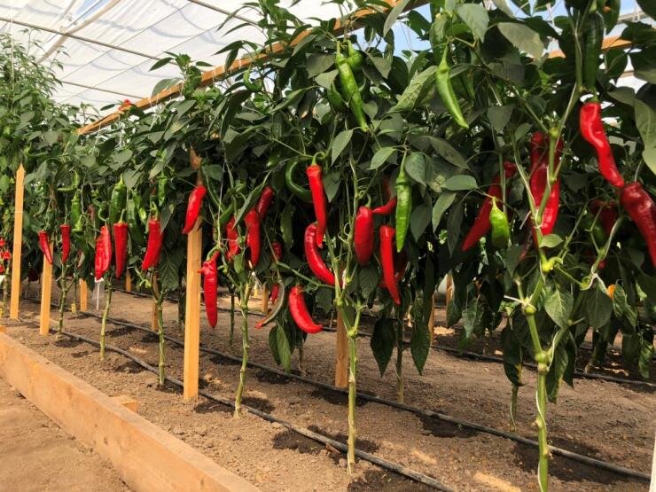 Фото: конусовидный перец Зорька под временными пленочными укрытиями