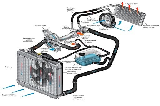 Ремонт и замена радиатора печки автомобиля лучше осуществлять в теплое время года. Передвижение на машине в холод с неработающем отопителем – процесс не из приятных. Во-первых, есть существенный риск переохлаждения и получения простудных заболеваний. Несмотря на зимнюю одежду, продолжительное нахождение практически без движения на морозе очень опасно. Во-вторых, без обогрева на внутренней стороне стекол будет образовываться конденсат от дыхания. Если температура отрицательная, то он будет превращаться в иней, что препятствует нормальному обзору. Особенно, если речь идет о перемещениях в условиях ограниченной видимости. Ну и, конечно же, говорить о каком-либо комфорте не приходится. Система отопления При сгорании топлива, которое постоянно происходит в ДВС, выделяется энергия. Часть ее, преобразованной в крутящий момент, отправляется с коленчатого вала в КПП и далее, в трансмиссию, чтобы обеспечить возможность передвижения автомобиля. Другая, меньшая, позволяет работать навесному обор