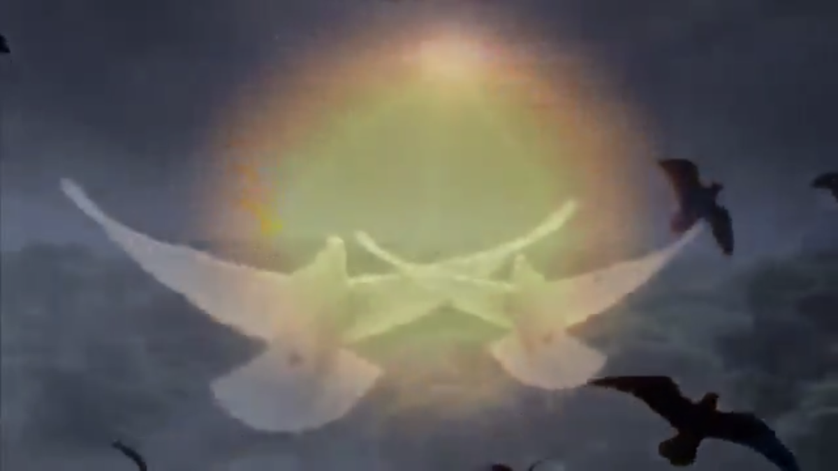 Алеша прилетел в образе голубя- мира.