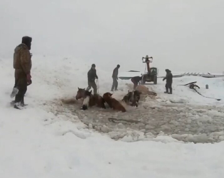 Из-за нестабильных погодных условий лед подтаял и стал намного тоньше. Лошади по привычке вышли на лед, однако их ждало неожиданное происшествие. Семь животных провалились под ледяную толщу. Всех доставали с помощью веревок, тракторов и человеческой силы. Фермер и его помощники действовали оперативно, поэтому трагедии удалось избежать.