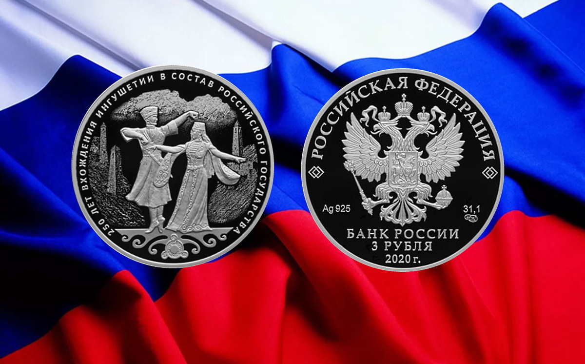 25 февраля 2020 года Банк России выпускает в обращение монету 3 рубля 250-летие вхождения Ингушетии в состав Российского государства.