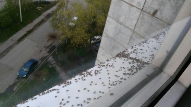 Напомним, что с сегодняшнего утра жители города наблюдают внезапное появление множества насекомых в своих жилищах. Раздавленные насекомые выделяют крайне неприятный запах.