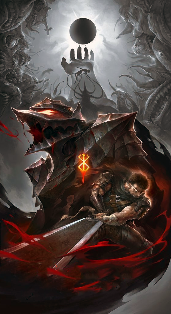 Мрачное и серьёзное аниме, с элементами фантастики и ужасов, держит в напряжении. Так же в этом аниме присутствует глубокий и очень тяжелый сюжет, аниме заставляет задуматься о некоторых вещах в жизни. Рассказывает же нам о злоключениях главного героя, который сам себя зовет Черным Мечником и о его верном друге, мече по имени Убийца драконов. Очень популярное аниме в свое время, и мне кажется даже сейчас можно рекомендовать к просмотру, особенно самую первую картину из линейки "Берсерк".