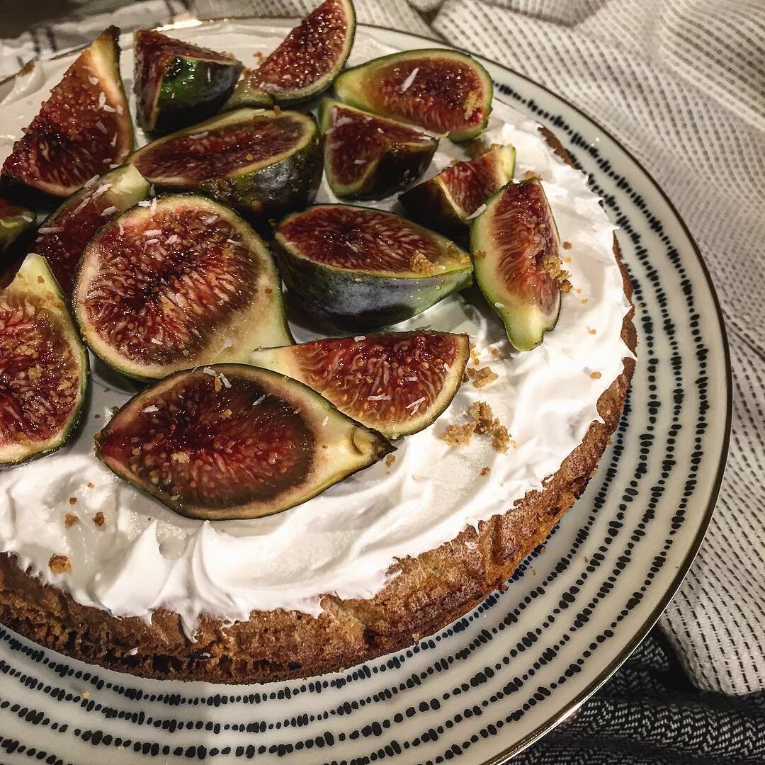 5. Остудить сливки в холодильнике. Нужно отделить верхнюю густую часть от воды. Для сливок мы будем использовать только густую часть. Взбить венчиком до густоты с сахарной пудрой и ванилью. 6. Покрыть кремом корж, добавить инжир. Больше рецептов вы можете найти на моей страничке: https://www.instagram.com/look_whaticook/