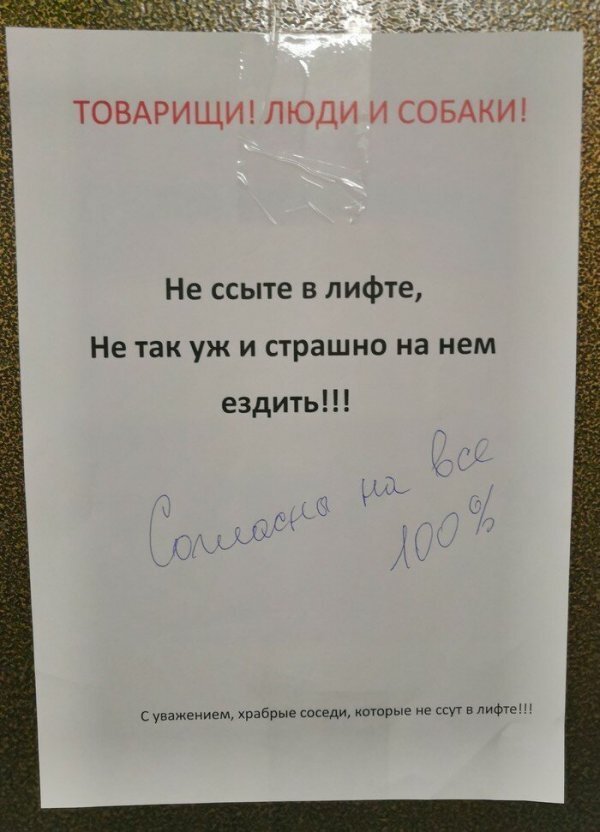 В каждом доме всегда находится хотя бы одна квартира, которая доставляет проблемы своим соседям...Сосед, между тем, в долгу не остаются. Вот вам подборка смешных объявлений в подъездах, адрессованых его жителям:) Интересно, помогло ли объявление-просьба? Ну очень запасливый сосед! Способ, как еще можно намекнуть соседям, об уважении:) Отец на грани отчаяния. Это о себе или о соседях? Любопытно, что такого сделала девушка из данной квартиры, и откуда соседи взяли ее трусы?? Ну перестаньте уже пугать детей:) Все о том же:) Тот, кто это писал — имеет глубокую фантазию. Это уже тяжелая артиллерия. Действительно, почему?? Не стоит оставлять в подъезде мебель. Это уже крик души матери:) Крыса, она и в Африке крыса:) Спасибо за просмотр! Добра вам и хороших соседей! На моем канале есть еще множество интересного! Подпишись!:)