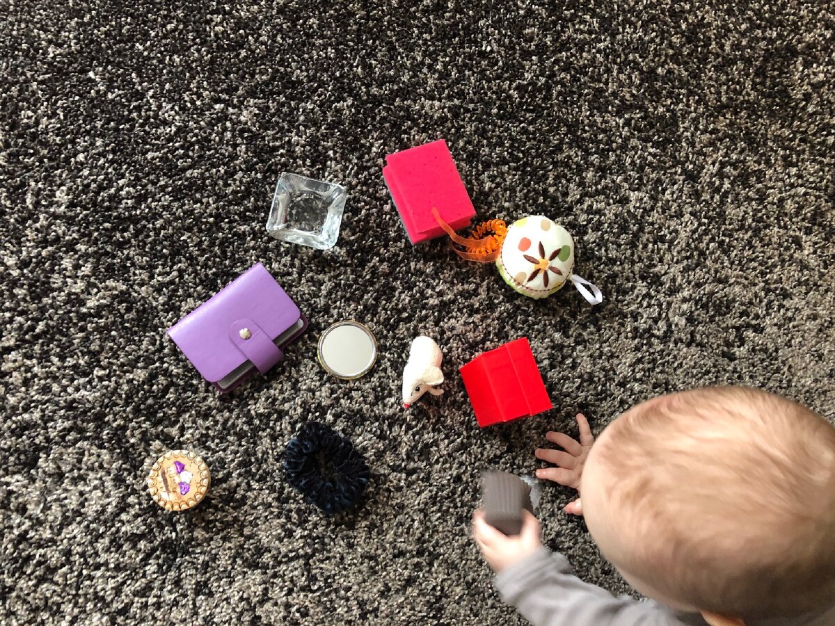 Несмотря на то, что предметы для игры я подбирала максимально безопасные, я все равно присматривала за ребёнком, чтобы он не откусил кусок губки или не проглотил шнурок.