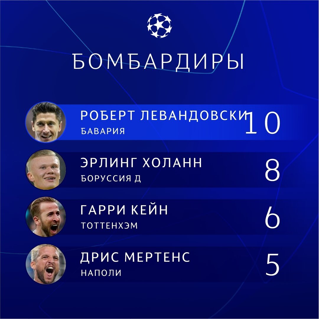 Лучшие бомбардиры нынешнего сезона Лиги Чемпионов.