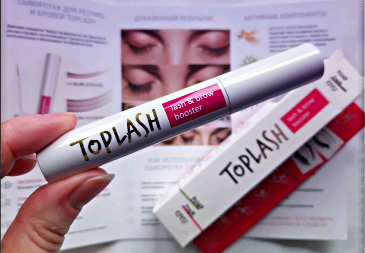 Приветствую вас, дорогие читатели! В связи со сложной эпидемиологической ситуацией хочу пожелать вам здоровья и крепкого иммунитета! Не болейте! Я отношусь к той категории женщин, которые не наращивают реснички (и не делают шеллак 😀). Но хлопать ими и взлетать — хочется. Однажды мне подпалили ресницы на левом глазу. Они быстро отросли. И мне казалось, что они стали более жесткими и длинными. Визуально это выглядело именно так. На небольшой площади ресниц не было вообще. Досада. Научилась красить ресницы так, чтобы этот изъян был незаметен. Потом захотела ситуацию поменять. Что я для этого делала? — Переливала касторовое масло в пустой и чистый тюбик от туши и наносила каждый вечер его на ресницы с помощью щеточки. Но от этого у меня со временем начали опухать веки. Карепрост я использовать побоялась. Приглянулась мне сыворотка для роста ресниц и бровей Toplash. Почему приглянулась? В ее составе нет лекарственных форм, которые используются в офтальмологии для лечения, и гормонов. За