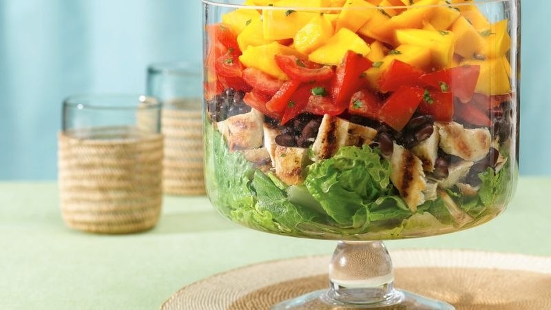 Салат выглядит очень красиво в порционных высоких фужерах или прозрачных креманках. Особенно эффектно смотрится в стеклянных пиалах. Главное в салате, конечно, его пикантный вкус. Но при оригинальном украшении и красивой подаче, такой салат будет н