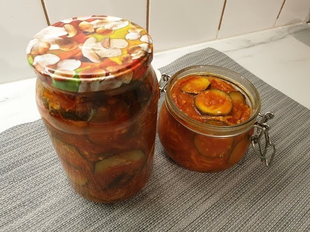 Готовые кабачки перекладываем в стерилизованные банки, закупорили и все. Приятного аппетита! Такие кабачки можно кушать с любым гарниром или просто положить на кусочек хлеба вкусное кабачковое колечко).