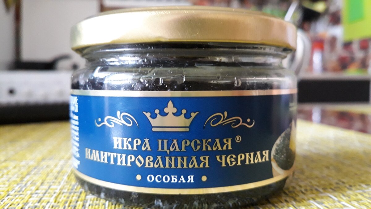 И снова наш "любимый" всеми магазин "Светофор". Не скажу что выбор на данный продукт пал случайно. Где-то раньше я читал отзывы именно про эту марку имитированной икры. Ну и соответственно решили попробовать,так сказать, "собственоручно". Сразу уточню тот момент, что сравнивать мне не с чем. Так как я не попробовал настоящую чёрную икру. А если вдруг и попробовал, то настолько давно, что даже и не помню когда это было. Стоимость этого чуда - 59 рублей. Что сказать про это ? Консистенция - не каша, икринки рассыпчатые. Так как икринки очень мелкие, то их довольно сложно раскусить, поэтому есть что бы распознать вкус, надо ложкой ))) На вкус что-то рыбное )) Ну уж не противное точно. Так же у этого производителя есть икра имитированная красная. Вот эта очень больше походит на натуральную. Довелось поесть настоящую 😉 Понятно что разница есть, но всё же. Есть экземпляры дороже и хуже. Скажем для украшения стола, и так, бутербродик на завтрак, вполне себе сойдёт. Если выбират