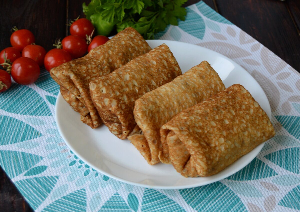 Ингредиенты: для теста: для начинки: Способ приготовления: 1) Приготовить тесто: в миске взбить яйца, налить теплую воду и взбить, добавить соль, сахар и соду. Затем, частями всыпая просеянную муку, хорошо размешать венчиком. При этом следить за тем, чтобы тесто получилось сметанообразной густоты, без комочков. Развести лимонную кислоту в 1 стакане воды, влить в тесто, еще раз взбить и сразу же приступать к выпеканию блинов. 2) Приготовить фарш: говядину или свинину пропустить через мясорубку. Лук тоже пропустить через мясорубку. Прожарить на сковороде с маслом. 3) Круто сварить яйца, порубить, тоже соединить с фаршем, посыпав солью, молотым перцем и мелко нашинкованной зеленью петрушки или укропа - все перемешать. 4) На середину каждого готового тонкого блина положить по 1-2 ст.л. мясного фарша, свернуть так, как формируют капустные голубцы. 5) При подаче на стол блинчики положить на тарелку по 2 шт на порцию и смазать маслом. ПРИЯТНОГО АППЕТИТА!!!