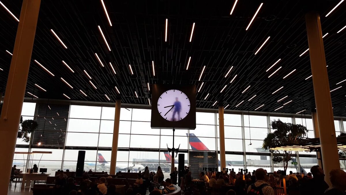 Какие вы знаете часы? Наручные, электронные, с кукушкой, что еще? Я вам расскажу про часы с человеком внутри. Это один из арт-объектов серии работ Бааса «Реальное время». Они висят в аэропорту Схипхол в Амстердаме. Перформансист — знаменитый голландский дизайнер Мартен Баас (названный по версии ярмарки Design Miami дизайнером года) запустил проект Real Time еще в 2009 году. В его рамках в музее Зёйдерзе голландец представлял слегка покосившиеся «дедушкины» часы Grandfatherclock, стрелки которых занимали нужную позицию благодаря усилиям занятого в видео актера. В том же 2009 году на миланском мебельном салоне был показан ролик «Sweepers clock», где часовые стрелки, выполненные из всякого мусора, целый день передвигали два человека. На самом деле часы в аэропорту - это всего лишь один большой обман: внутри гигантского ящика с прозрачными стенами никто не сидит. Это всего лишь очень правдоподобная иллюзия. На которую, судя по роликам в соцсетях, купилось множество пассажиров. Г