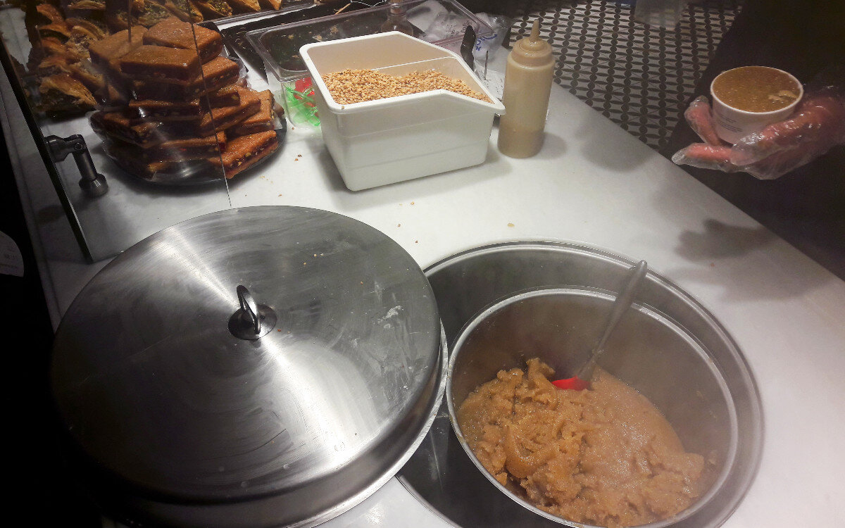Халва для россиян давно уже известная и одна из любимых восточных сладостей. Но в каждой стране, где ее готовят столетиями, есть свои рецепты и предпочтения. В Турции тоже есть свои особенности. И несмотря на кажущееся разнообразие этого десерта в магазинах и на рынках, в стране принято использовать всего две основы для производства халвы - это мучная (манная) и кунжутная (тахинная). Есть еще один секретный ингредиент;) Это экстракт корня растений Gypsophila rokejeka, он способствует улучшению вкусовых качеств и халва становится более воздушной. Мы любители халвы и каждое утро на всем протяжении путешествия по Турции , баловали себя утренним чаем или кофе с халвой. И только в последние дни открыли для себя новый вид этого чудесного лакомства - горячая халва) Гуляя по улицам Старого города в Антальи, увидели очередь и довольных, поедающих что-то явно вкусное покупателей. Пройти мимо мы могли. Начали заглядывать в кастрюлю из которой накладывали вкусности. Оказалось, это горячая ха