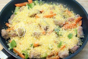 Вам надоели стандартные гарниры — картофель, рис, гречка, пшенная и пшеничная каши? Попробуйте разнообразить свой рацион кукурузной кашей. Она имеет очень аппетитный вид благодаря желтому цвету, а еще, хорошо сочетается с мясными блюдами. Именно поэтому сегодня в нашем меню — кукурузная каша с курицей. Ингредиенты: Приготовление: 1. Кукурузное крупу хорошо промываем, кладем в кастрюлю с толстым дном (керамическую или чугунную) и заливаем 3 стаканами воды и солим. 2. Ждем, пока кукурузная каша сварится. А тем временем берем курицу и руками разбираем ее на мелкие кусочки. Мы берем куриные крылышки в томате, поэтому обирает мясо с костей и выбрасываем кожуру. 3. Кукурузная каша уже почти готова — она ??уже не жидкая, но еще не совсем густая. 4. Куски курицы кладем в кашу и хорошо размешиваем блюдо. 5. Добавляем сливочное масло, ведь курятина — мясо диетическое и нежирное. Конечно, можно и вовсе не добавлять жира — это уже на ваше усмотрение. Кукурузная каша с курицей готова! Расклады